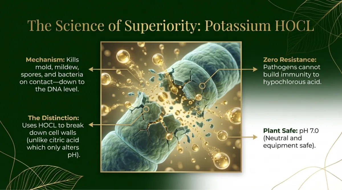 Growers Choice Plant Guard is a specialized, formulated potassium HOCL product, designed for safe and effective pathogen control.